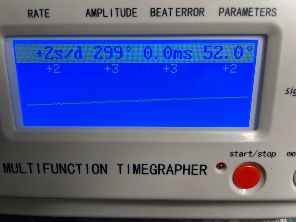 The photo shows the Timegrapher result , not a piece of kit commonly available , and apart from the obvious accuracy the beat error of 0.0 ms is remarkable.