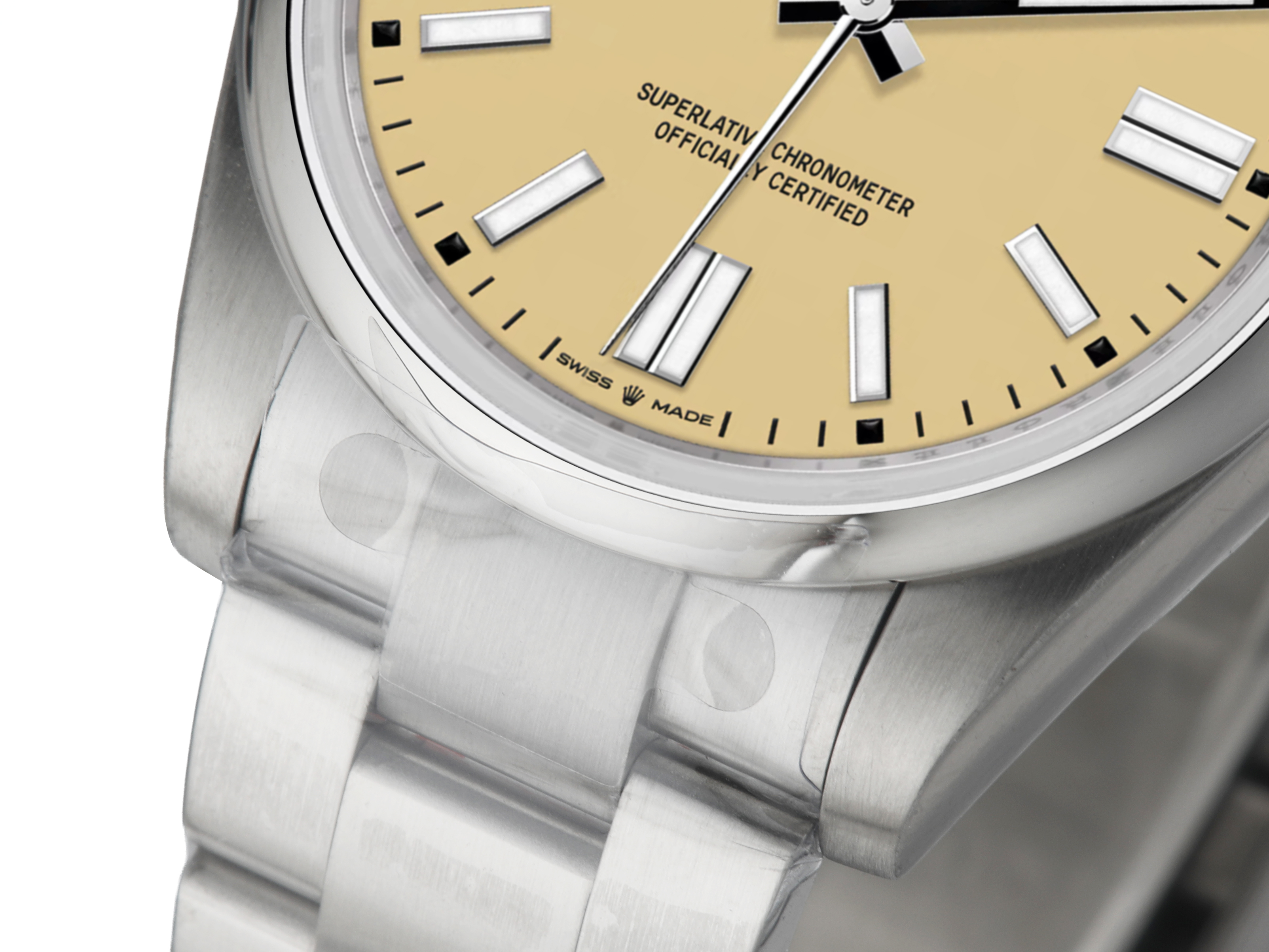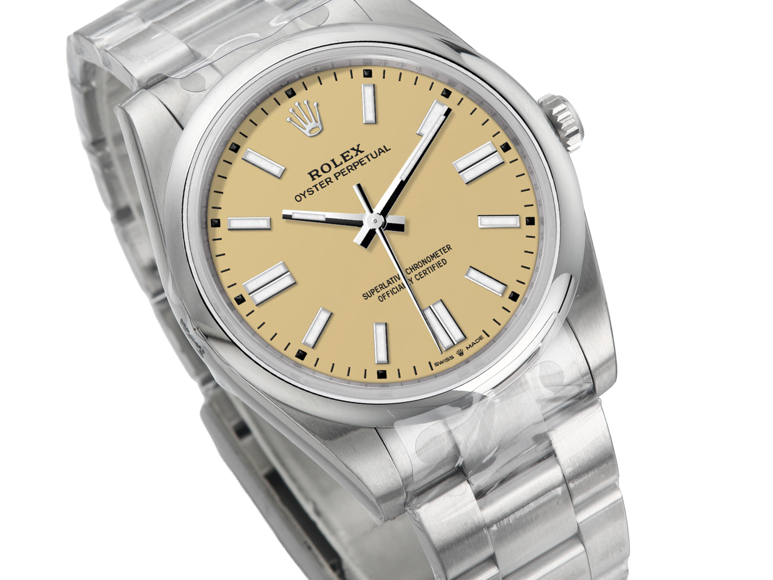 The 2025 Oyster Perpetual 41 with a beige dial combines timeless elegance with precision engineering. Featuring a refined beige matte lacquer dial, this timepiece is housed in a robust 41mm Oystersteel case with a slender profile.
